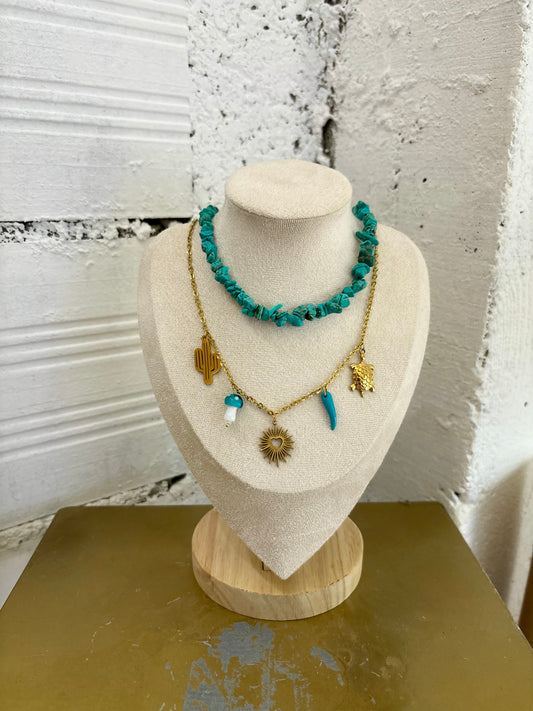Collier charms perles bleues